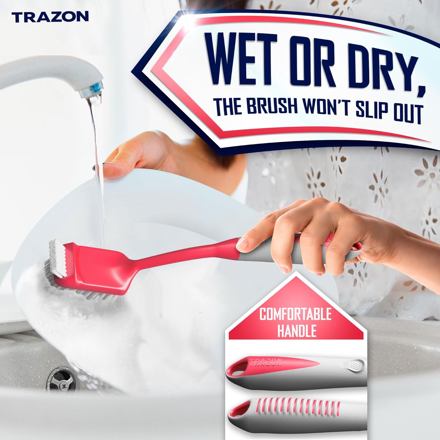 - Scrub brush - scrub brush with handle features a built-in scraper to easily scrub away stuck-on food