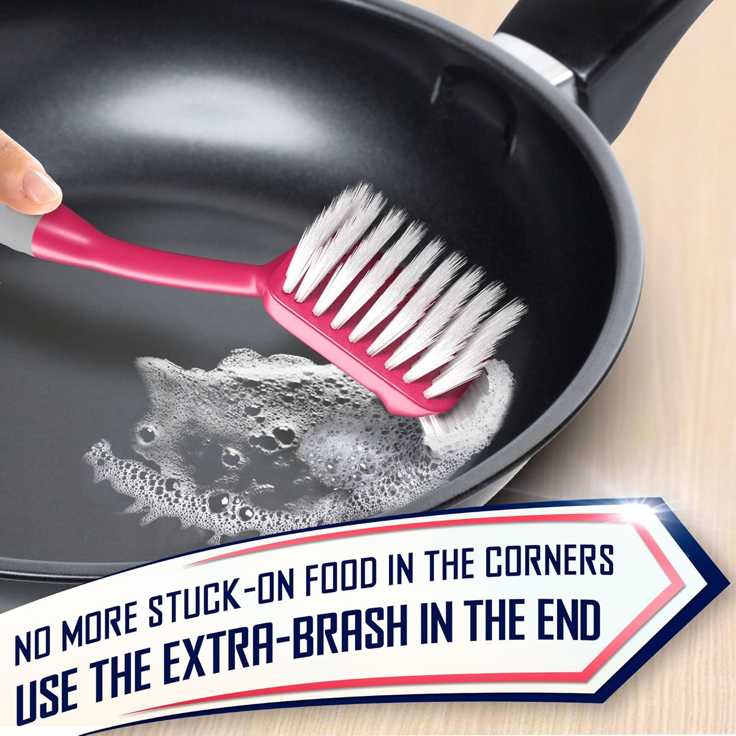 - Dish brush - our kitchen dish brush has an extra layer of strength bristles at the end to let you get to every corner of the pots to make them squeaky clean