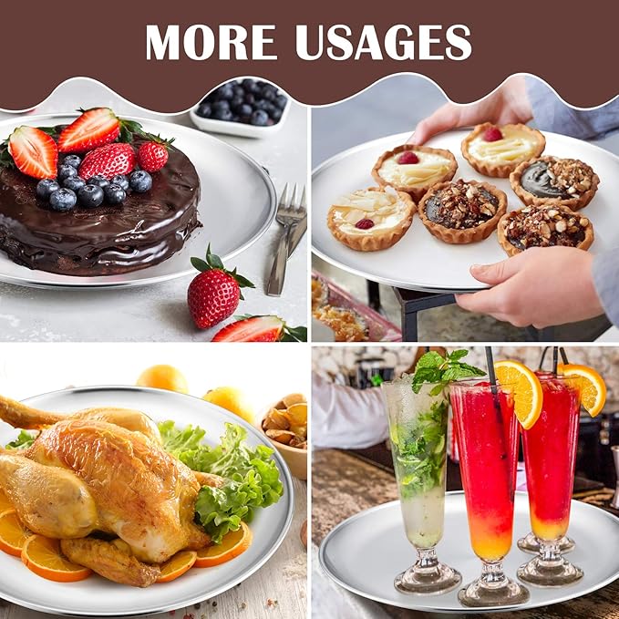 - 【DISHWASHER SAFE】 These pizza plates are brushed finish for abrasion and stain resistance, Less food sticking for clean easily, Simple wipe with a dishcloth under warm soapy water, Or throw them into dishwasher to save your time