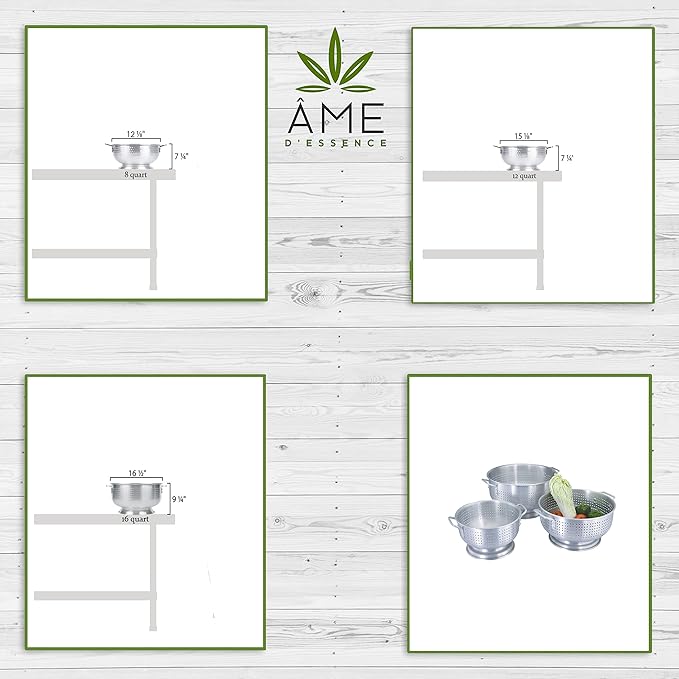 (12-QT) Aluminum Colander with Handles and Base Heavy Duty Commercial Grade