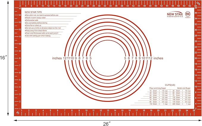 New Star 1029017 Non-Slip Silicone Pastry Mat, Extra Large with Measurements, 16x26'', NSF Certified