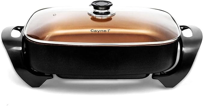 Caynel Professional Non-stick Copper Electric Skillet Jumbo, Deep Dish with Tempered Glass Vented Lid, Upgrade Thermostat, 16”x 12”x 3.15”- 8 quart