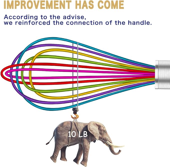 - ERGONOMIC HANDLE: The stainless steel handle offers a secure, comfortable grip and resists chemical reactions. Its sleek design and easy maneuverability make this plastic whisk a valuable addition to your kitchen