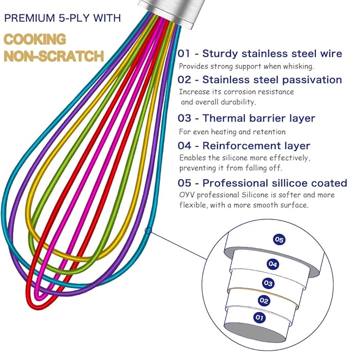 - SEALED, WATERPROOF DESIGN(LASTEST UPGRADE): The OYV whisk features a seamless sealing design at the handle connection, preventing water from getting in. Therefore, it is effortlessly dishwasher-safe and easy to clean
