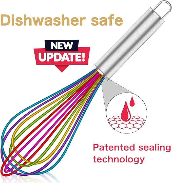 - STRONG AND SAFE: professional rubber whisks are resistant to heat up to 450 degrees Fahrenheit, making them ideal for cooking almost any favorite food. BPA-free silicone design is highly resistant to bacterial growth and stains