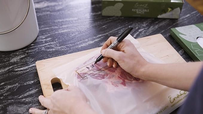 - OCCASIONS: ENA's unbleached and dye-free resealable bags are made from plant starch in off-white color. They are packaged in recyclable boxes for easier storage and usage. ENA's food bags keep food fresh and nutritious. They are perfect for meat, fish, and chicken storages and marinade in the refrigerator. They are perfect for storing food like sandwiches, bite-size snacks, fruits, cookies, pie and quick bites.