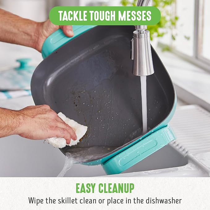 GreenLife 12" 5QT Square Electric Skillet, Glass Vented Lid, Ceramic PFAS-Free Nonstick Interior, Adjustable Temperature Control, Cool Touch Handles, Quick Even Heating, Scratch Resistant, Turquoise