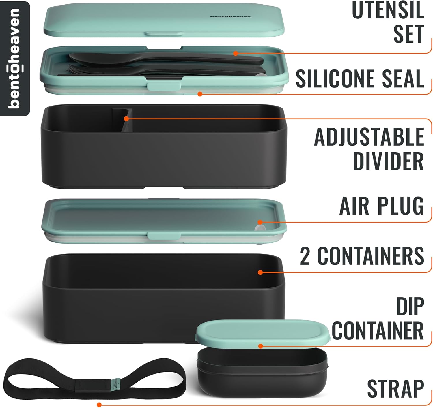 - Leakproof Bento Lunch Box! The Bentoheaven lunch box’s strong silicone makes it 100% leak-proof, while remaining super easy to open due to the built-in air vent plug.