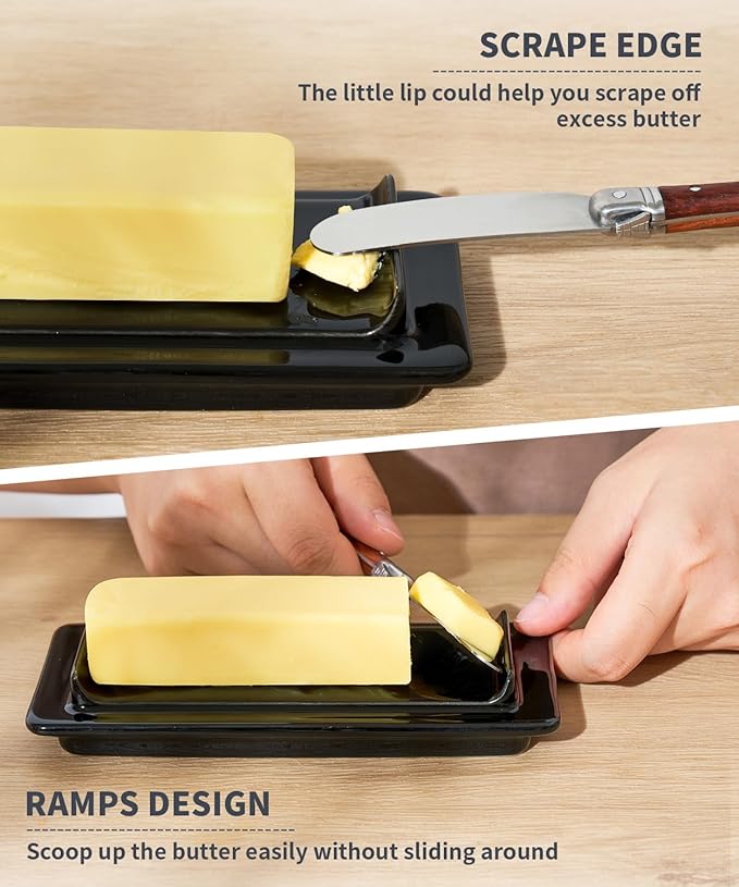 - Unique Design - This is a fantastic ramp in the inner, it makes getting pat of butter easy without it sliding around or landing on the counter, and this little lip could help you scrape off excess butter, so convenient.