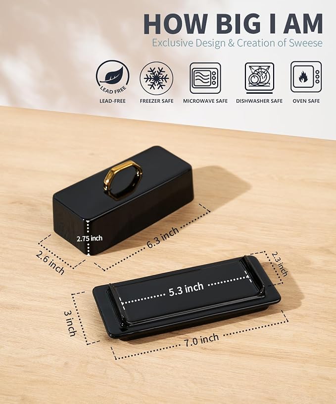 - Pro-Grade Porcelain & SAFE - These Sweese butter dish with lid is food safe, BPA-FREE and LEAD-FREE than the ugly plastic kind of butter dishes. It is made of sturdy porcelain, chip-resistant, and more sturdy than stoneware. And the lid is thick so will protect from sunlight heat.
