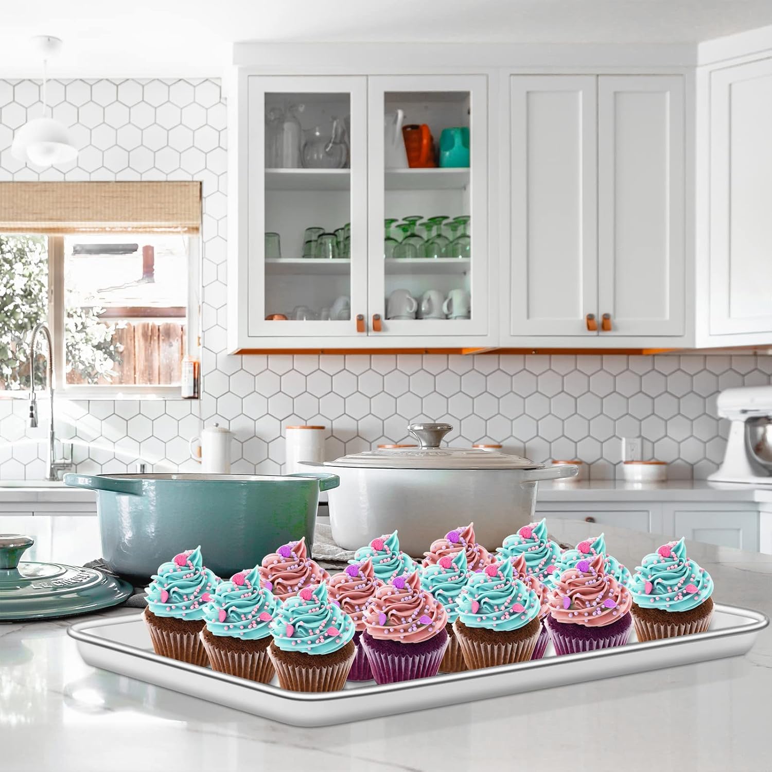 - π [SOLID CONSTRUCTION] Thick gauge with sturdy construction, these heavy-duty half sheet pans have a reinforced, rolled edge that provides extra strength to help resist warping in the oven. The cooling racks with raised feet facilitate air circulation for evenly baked goods. Feel sturdy and solid in hands, durable for serving many years.
