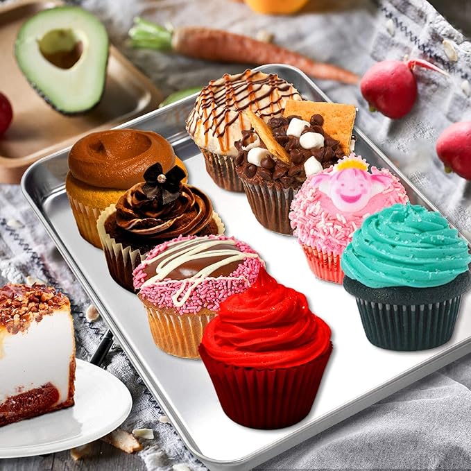 - DURABLE: Our stainless steel cookie sheet has superior mirror finish to reduce the risk of food sticking. Smooth roll edges make it comfortable to hold and transfer, rust free and durable for a long service time
