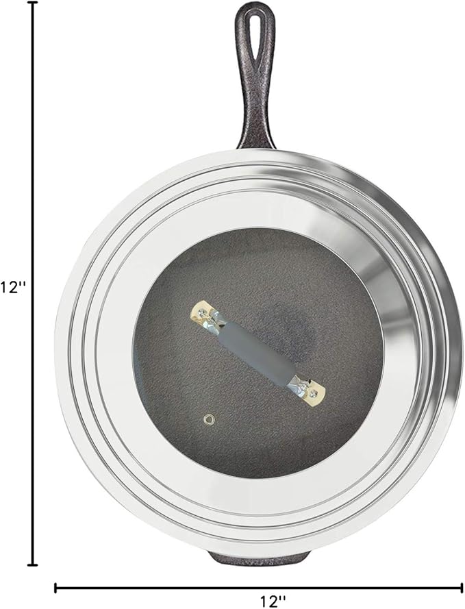 - Steam Vent: The vent hole of the universal frying pan lid exhausts steam instantly to avoid overflow, also provides a channel to insert a thermometer.