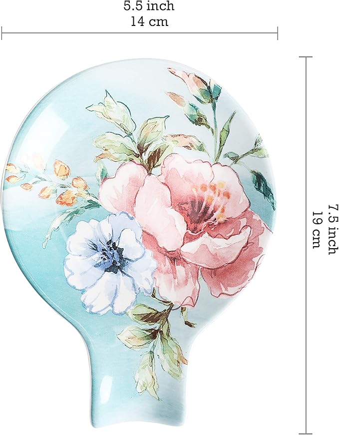Bico Margret's Garden Spoon Rest for Stove Top, Ceramic Spoon Holder for Kitchen Counter, Easy to Clean Coffee Spoon Rest Dishwasher Safe, Kitchen Cooking Utensil Rest for Ladles Spatula