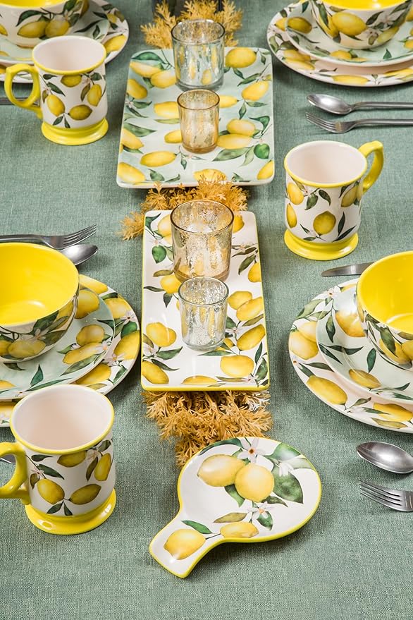 Bico Lemon Dreams Spoon Rest for Stove Top, Ceramic Spoon Holder for Kitchen Counter, Easy to Clean Coffee Spoon Rest Dishwasher Safe, Kitchen Cooking Utensil Rest for Ladles Spatula