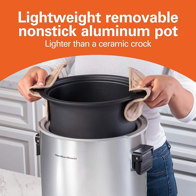 - LIGHTWEIGHT REMOVABLE NONSTICK ALUMINUM POT. The lightweight removable pot is lighter than a ceramic crock, so itโs easy to lift when the pot is full.
