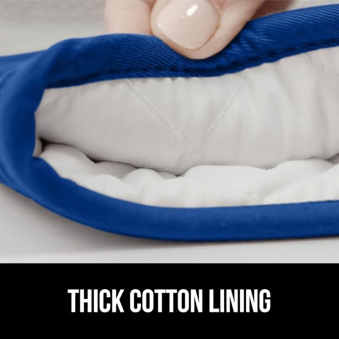 GORILLA GRIP BPA-Free Soft Silicone Oven Mitts, 14.5x8.3, Heat Resistant and Waterproof Cooking Gloves, Thick Cotton Lining, Flexible Gripping for Baking Grilling, Kitchen Potholders Set of 2, Blue