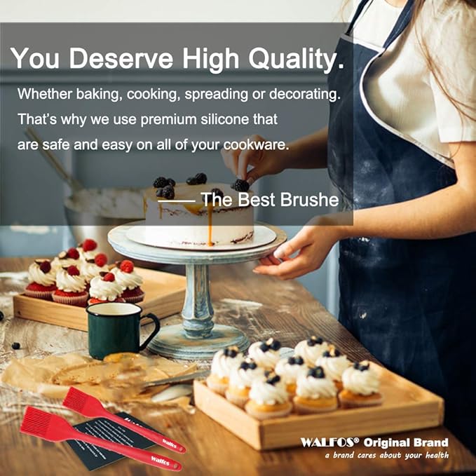 - ★ PREMIUM SILICONE, HEAT RESISTANT UP TO 450°F - WALFOS pastry brush made of high-quality food grade silicone which is BPA free. Safe to use in Oven, Microwave, Dishwasher & Freezer. Will never melt,discolor or shrink when grilling, basting or cooking (unlike some plastic, nylon or wooden brushes).