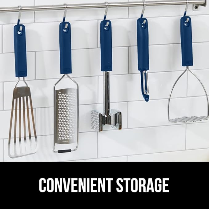- PATENTED ERGONOMIC, SLIP RESISTANT HANDLE: featuring an ergonomic, soft touch rubber handle, peeling has never been more comfortable; our unique slip resistant handle helps you keep a firm grip; oversized design measures nearly 8 inches, making the vegetable peeler an ideal size for even the toughest produce