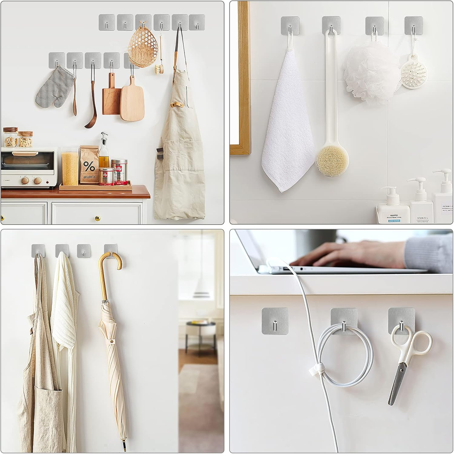 - Well Made: Self adhesive hooks are using 304 stainless steel material, smooth edges, sturdy and durable; surface brushed treatment have excellent waterproof, antirust and scratch resistance; polished silver finish, minimal and sleek looking goes well in any decor