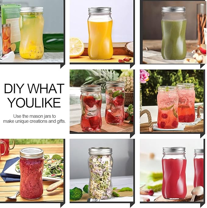 - Premium Glass Jars -- 12 pieces 16 OZ mason glass jar set with silver screw lids, which is made of the highest quality materials for maximum durability and convenience. Extra 20 whiteboard stickers that you can use to mark and stick on the cover so you can easily identify them.