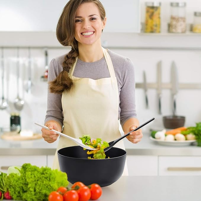 10" Large Salad Serving Bowl with Utensils in Lid, Bamboo Fiber Salad Bowl with Lid, Mixing Bowl with Servers set for Pasta,Fruit,Veggies,Popcorn to Replace Wooden Bowls - Matte Black