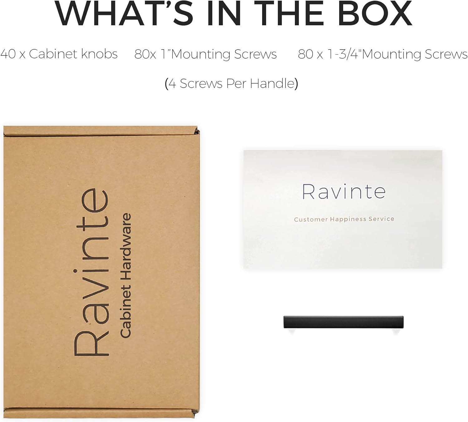 Ravinte 40 Pack Solid 3 Inch Center to Center Slim Square Bar Drawer Handles Kitchen Cabinet Handles Black Drawer Pulls Kitchen Cabinet Hardware Kitchen Handles Matte Black Cabinet Pulls