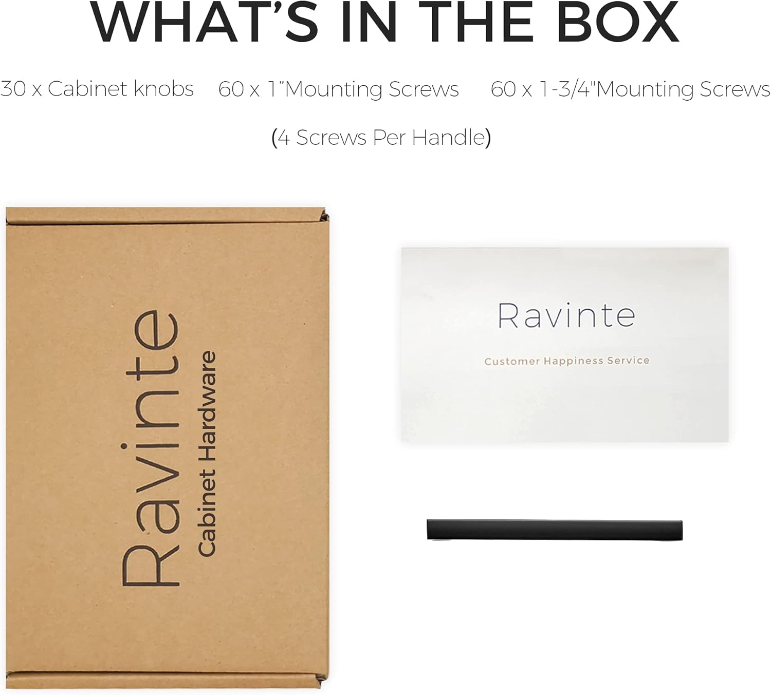 Ravinte 30 Pack Solid 3-3/4 Inch Center to Center Slim Square Bar Drawer Handles Kitchen Cabinet Handles Black Drawer Pulls Cabinet Hardware Handles Matte Black Cabinet Pulls