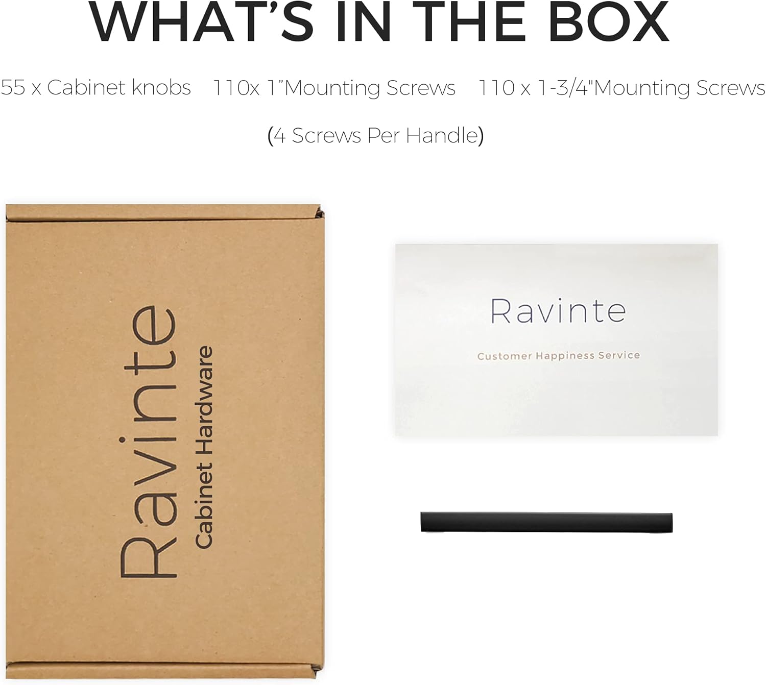 Ravinte 55 Pack Solid 3-3/4 Inch Center to Center Slim Square Bar Drawer Handles Kitchen Cabinet Handles Black Drawer Pulls Kitchen Cabinet Hardware Kitchen Handles Matte Black Cabinet Pulls