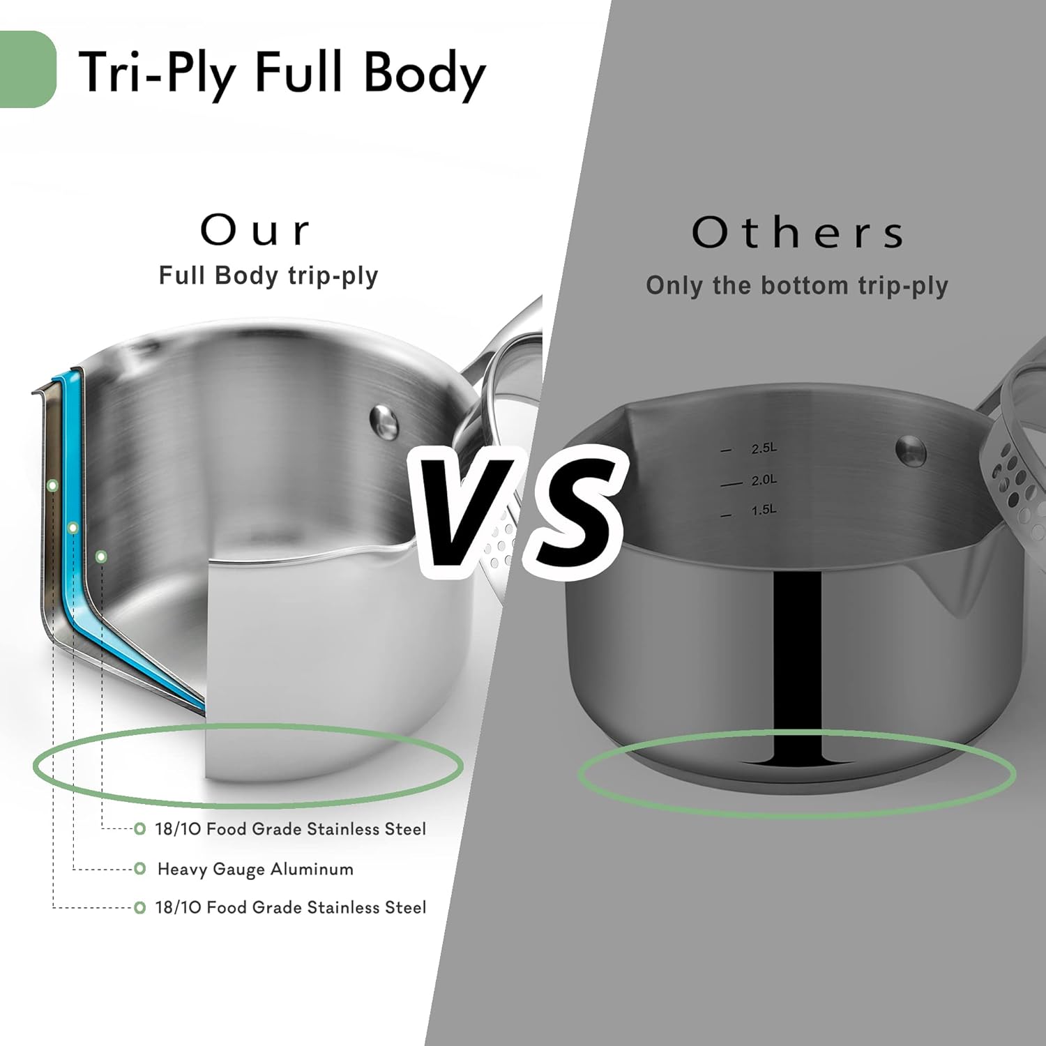 - Ideal Choice: Constructed with Tri-ply stainless steel, our cooking pot distributes heat evenly and avoids hot spots. It's oven-safe up to 550°F (glass lid is oven safe to 400℉) and dishwasher-safe for quick cleanup.