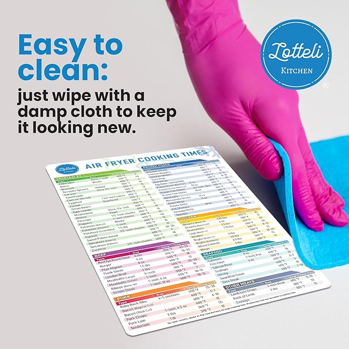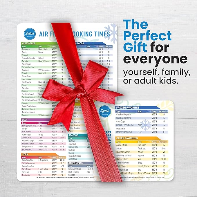 - PERFECT HOUSEWARMING GIFT: Presented in attractive packaging, our air fryer cheat sheet magnet is a thoughtful gift for anyone who loves to cook. Perfect for anyone, Lotteli makes cooking easier and more enjoyable for both experienced chefs and beginners alike.