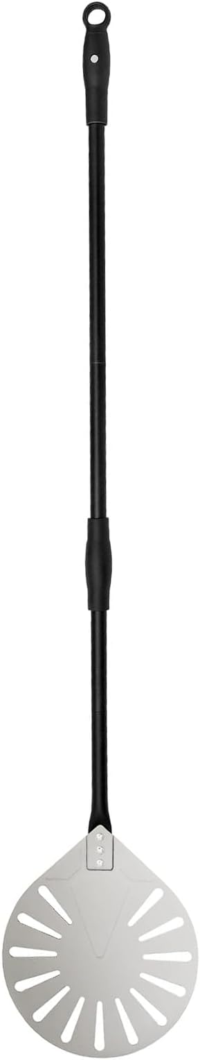 - 【User-friendly Design】Our perforated pizza peel features a flat, lightweight aluminum head and a comfortable silicone handle, ensuring safe and easy use. It is compatible with all oven types. Please note-avoid exposing the sliding handle to high temperatures