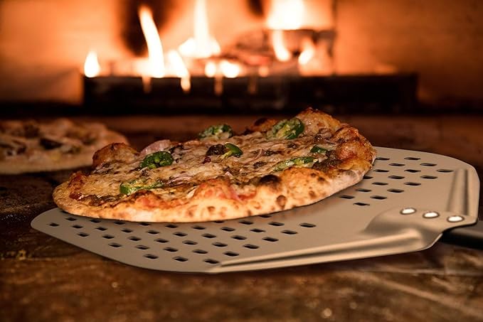 - 【RECTANGULAR PERFORATED HEAD】The 12" x 15" milled aluminum head boasts a beveled edge for easy handling, allowing pizzas to slide in smoothly. The perforated design of pizza spatula reduces the need for excessive cornmeal or flour, ensuring your pizza comes out crispier and more flavorful, with less sticking