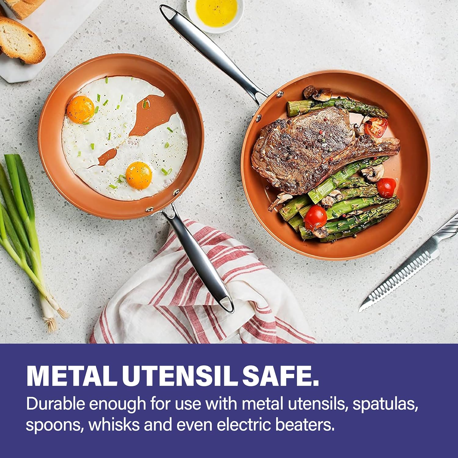 - SUPER DURABLE β the coating of the pan is durable enough to withstand metal utensils, spatulas, spoons, whisks and even electric beaters while delivering years of outstanding, nonstick use