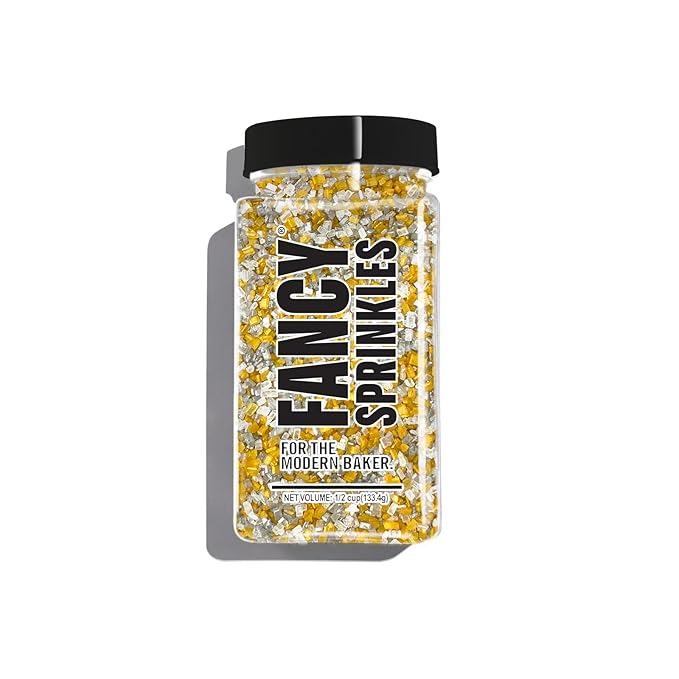 Fancy Sprinkles Filthy Rich Fancy Sugar Silver and Gold Pearlescent Sugar Crystals Flecked with Mini Edible Glitter Stars (4 OZ)