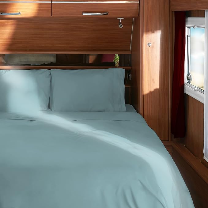 - Highest Quality Double Brushed Microfiber โ is silky soft, durable, breathable, pet friendly and long-lasting. Enjoy same comfort on the road as you would in your home. Fabulous color selection will match any decor and Our RV sheets are perfect for your motorhome, camper and travel trailer.