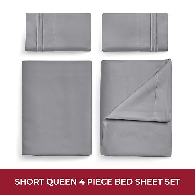 Mellanni RV Short Queen Sheets - 4 PC Iconic Collection Bedding - Hotel Luxury, Extra Soft, Cooling Bed Sheets - Deep Pocket up to 10 inch (RV/Short Queen, Gray)