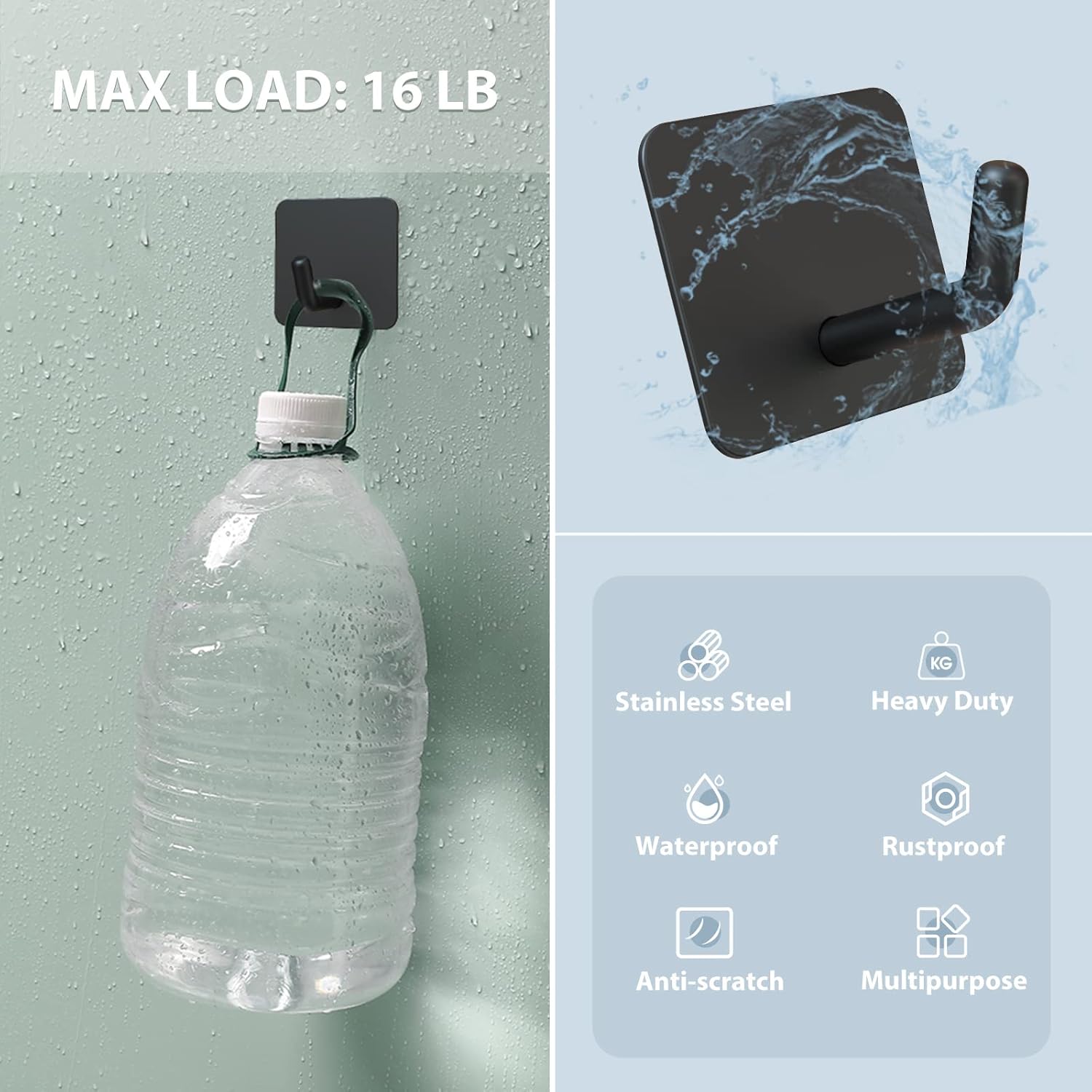 - Well Made: Self adhesive hooks are using 304 stainless steel material, smooth edges, sturdy and durable; surface electroplating treatment have excellent waterproof, antirust and scratch resistance; matte black finish, minimal and sleek looking goes well in any decor