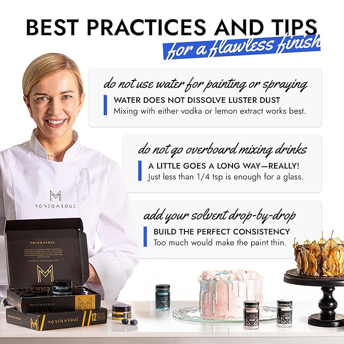 - EASY TO USE: Our blue luster dust is incredibly versatile. Apply with a wet brush, airbrush, or dry brush, and even mix into beverages. Achieve professional-looking results effortlessly at home, whether decorating halloween cakes or adding shimmer to cocktails.