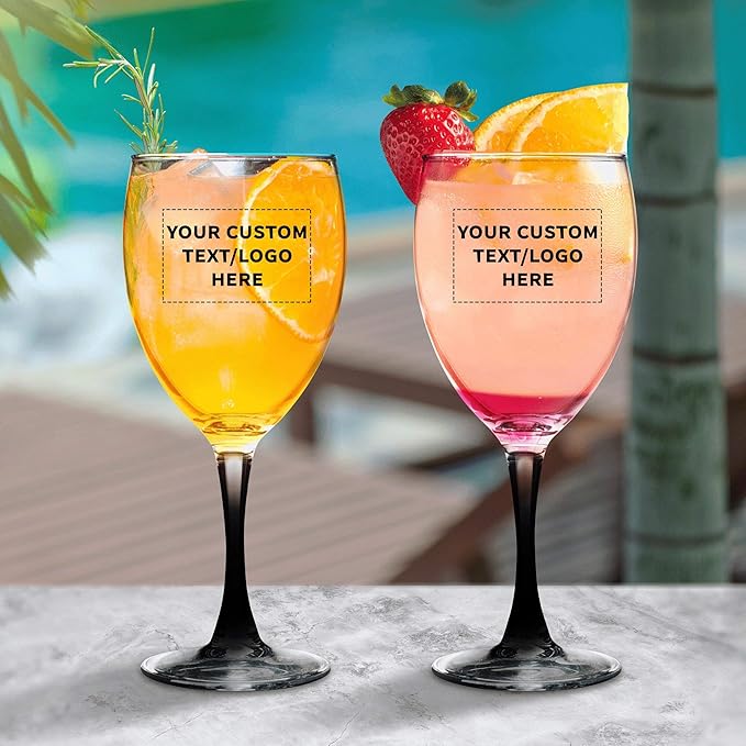 Custom Nuance Wine Glasses by ARC 10.5 oz. Set of 10, Personalized Bulk Pack - Restaurant Glassware, Perfect for Red Wine, White Wine, Cocktails - Black