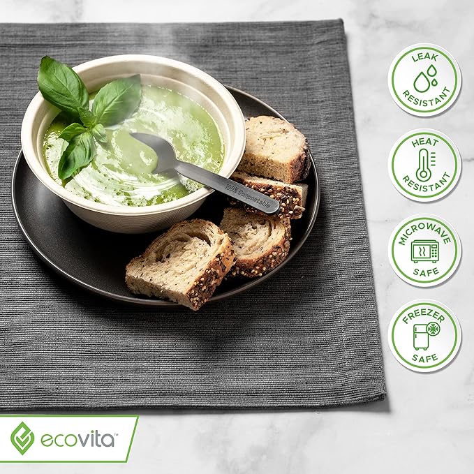 100% Compostable Paper Bowls [16 oz.] – 150 Disposable Bowls Eco Friendly Sturdy Tree Free Liquid and Heat Resistant Alternative to Plastic or Paper Bowls