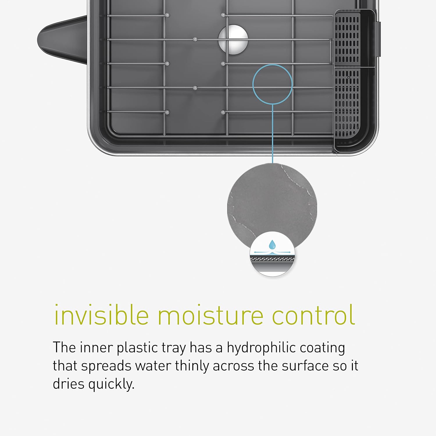 - ANTI-RESIDUE COATING - Hydrophilic coating on plastic tray causes water to spread so that it dries more quickly and prevents residue buildup. Very clean and efficient.