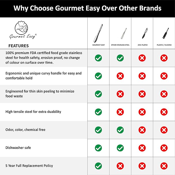 - GOURMET MADE SIMPLE: - At Gourmet Easy, we're dedicated to simplifying gourmet cooking experiences. We believe that creating delicious meals for your loved ones should be a fun journey, not a daunting task. Share the joy of cooking with your loved ones with our Gourmet Easy Peeler!