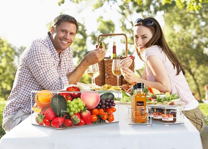 - CLEAR & STACKABLE: You can easily find what you want with these clear storage containers. Vertical design allows fridge organizer bins to remain stackable when full of stuffs, not only to save place but also makes your home look more organized.