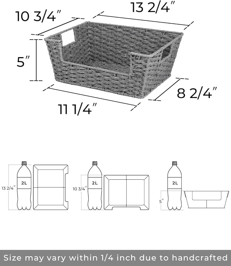 - Dimensions: 13 ¾"L x 11"W x 5 ½"H, size may vary within 1/4 inch due to handwoven design.