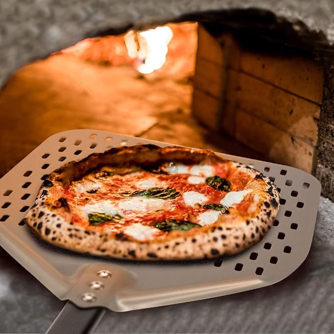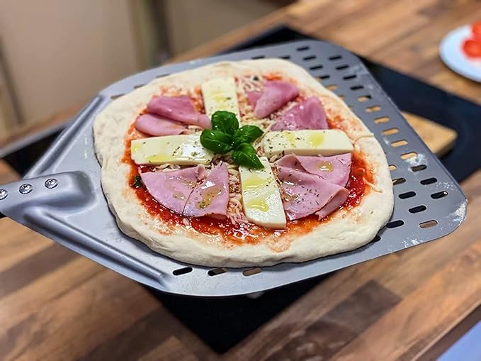 - DURABLE HARD ANODIZED ALUMINUM: 12-inch Perforated pizza peel is constructed with an lightweight hard anodised aluminium, which protect its surface from oxidation.