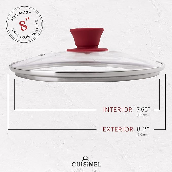 - TIGHT FITTING LIDS: Lock in just the right amount of steam and flavor with these universal sized replacement lids. Fits most 8"-inch skillets, frying pans, pots or sauce pan - enamel, non-stick or stainless steel cookware with the same diameter rim. You can use them for cooking, baking and even use them for storage of leftover food in the fridge or freezer. Keep hot splashes at bay while keeping an eye on progress with these see-through, durable glass lids - without having to remove the cover.