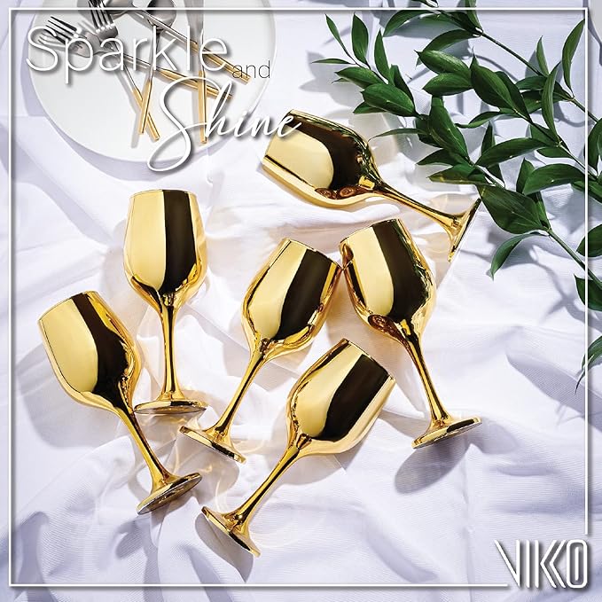 - GORGEOUS GOLD GLASS: Add a sophisticated pop of color to your table setup! These bright gold wine glasses are bold and beautiful and will wow you guests. Great for modern and elegant decors.