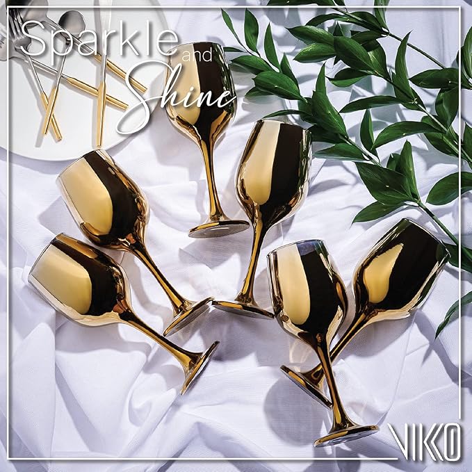 - GORGEOUS GOLD GLASS: Add a sophisticated pop of color to your table setup! These warm gold wine glasses are bold and beautiful and will wow you guests. Great for modern and elegant decors.