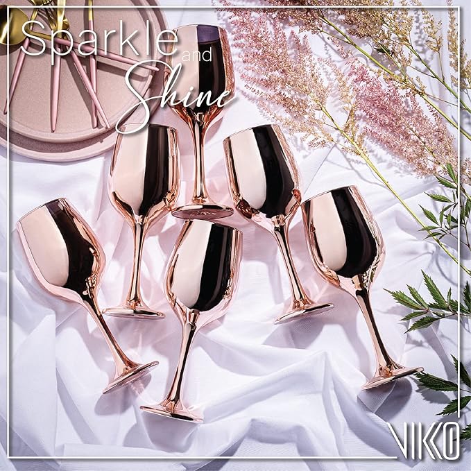 - GORGEOUS ROSE GOLD GLASS: Add a sophisticated pop of color to your table setup! These beautiful rose gold colored white wine glasses are bold and beautiful and will wow you guests. Great for modern and elegant decors.